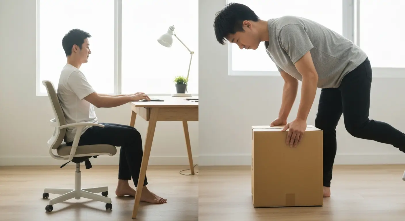 Eu costumo dizer que a sua coluna funciona como uma pilha de esponjas. Se você fica estático por horas na mesma posição, essas esponjas (os discos) perdem elasticidade e ficam rígidas. O alívio real não vem de remédios, mas de quebras de padrão: levante-se a cada 40 minutos para um breve “lanche de movimento”.